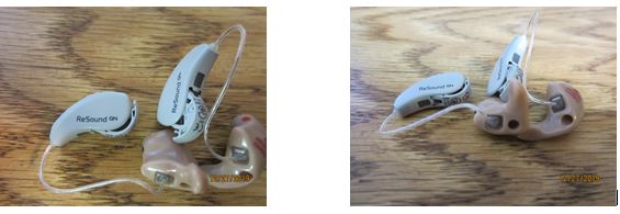 Notice the arrows pointing to the hole on the right side of each hearing aid. These are the vent holes. Once plugged up with earwax and other debris, they are closed off. When these close off and you talk, the voice in your head sounds like you are in a tin can talking. This is your time to clean them out and here’s how to do it.