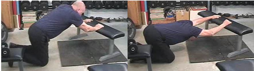 If you are able to kneel on your knees and resting your buttocks on your calves then do so on the floor. As you can plainly see here I am on a bench simply because it is easier to get into the correct position to do the exercise.