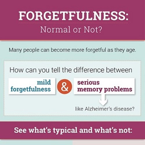 While there are different forms of dementia, Alzheimer’s disease is the most common form in people over age 65. The chart below explains some differences between normal signs of aging and Alzheimer’s.