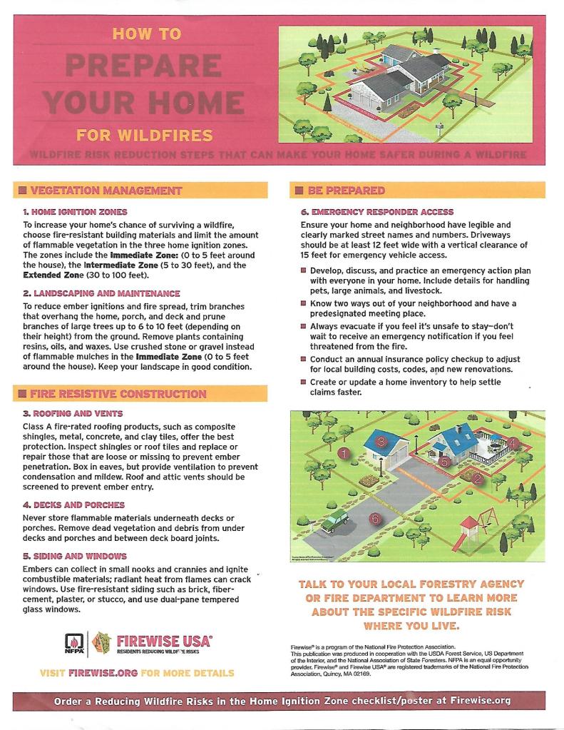 Talk to your local fire protection agencies such as the local fire department, State wildfire agency to learn about the specific wildfire risk where you live.